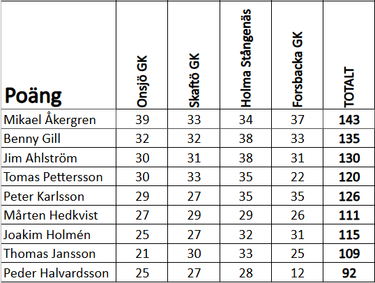 (Forsbacka GK, Skaftö GK, Holma-Stångenäs GK, Forsbacka GK)